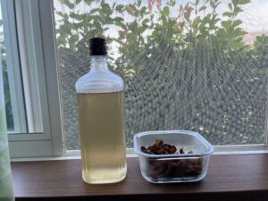 ウイスキーで付けたのは今年初めて(これまではホワイトリカーやブランデーでした)なので、どんな味になるのか楽しみに完成まで待ちたいと思います。