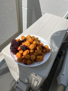 台所も気温30度超えそうだったので、冷蔵庫で保管しながらシロップを作りました。常温だと腐りそうでした。